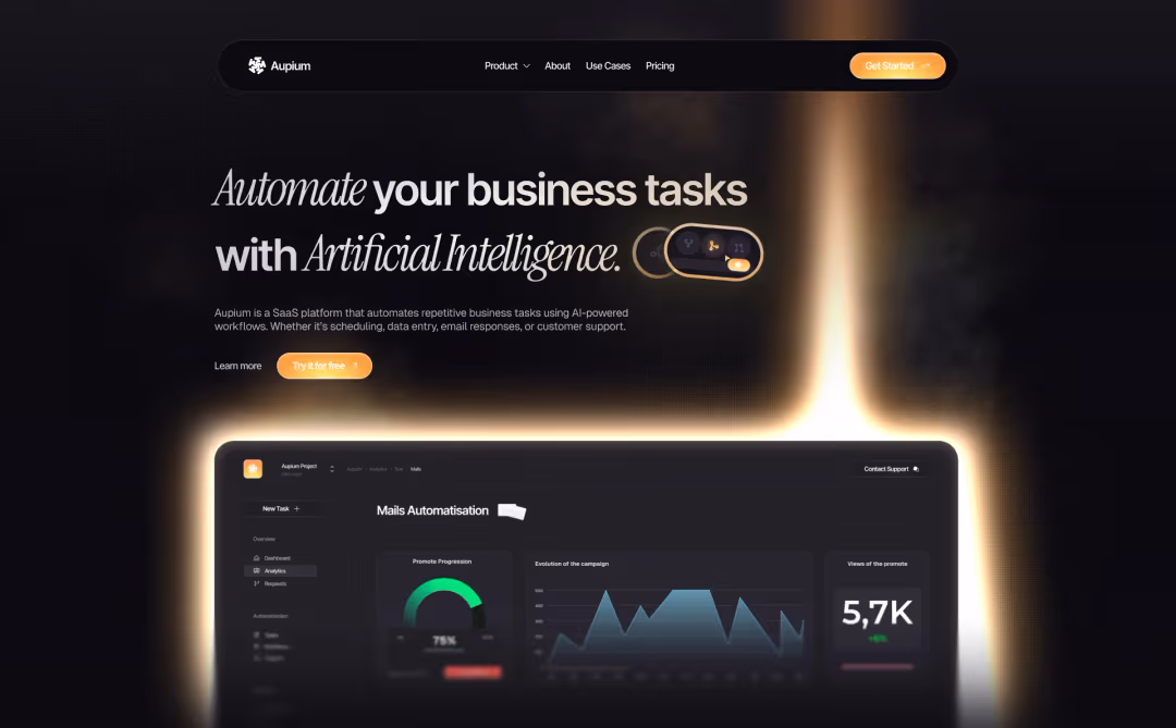 Aupium is a SaaS platform that automates repetitive business tasks using AI-powered workflows, including scheduling, data entry, email responses, and customer support.